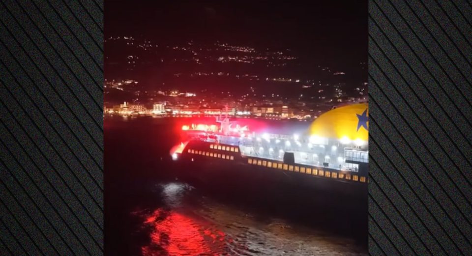 Ο καπετάνιος του Blue Star Mykonos τίμησε την Τήνο με καπνογόνα, ενώ οι ντόπιοι ανταπέδωσαν με πυροτεχνήματα, δημιουργώντας μια μοναδική ατμόσφαιρα παραμονή Δεκαπενταύγουστου.