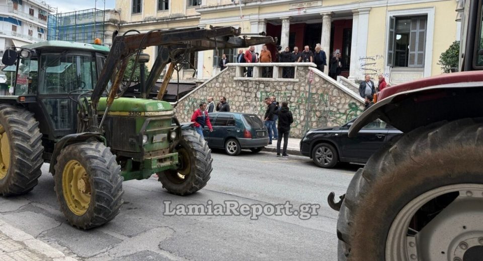Λαμία: Αγρότες διαμαρτύρονται με τρακτέρ έξω από τα δικαστήρια υπέρ των κατηγορουμένων συναδέλφων τους