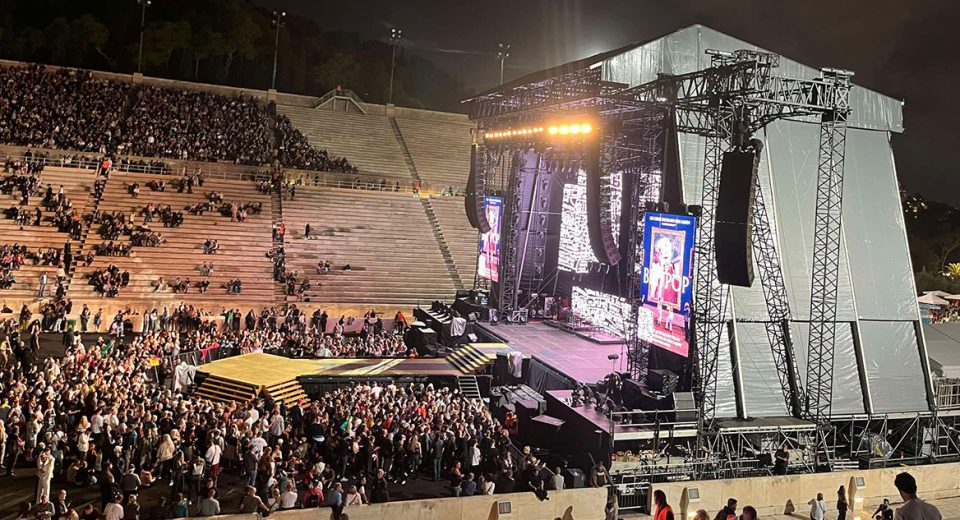 Πλήθος συγκεντρώνεται στο Παναθηναϊκό Στάδιο λίγες ώρες πριν την εμφάνιση του Βρετανού σταρ, με την λειτουργία του Μετρό να παρατείνεται για τη διευκόλυνση του κοινού.