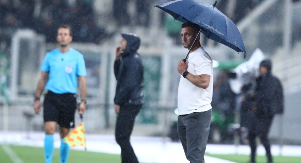 Η έντονη βροχόπτωση στην Αθήνα κατά τη διάρκεια του αγώνα του Παναθηναϊκού με την Γκόου Αχέντ Ιγκλς οδήγησε τον Ολλανδό κόουτς να προστατευτεί με ομπρέλα.