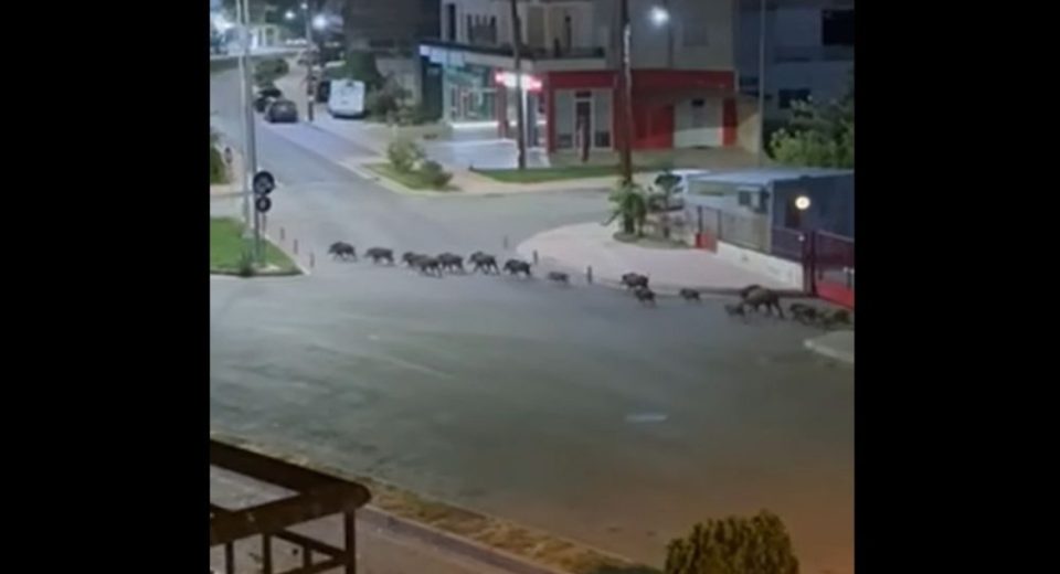 Αγριογούρουνα εισέβαλαν στην πόλη της Λιβαδειάς – Ασυνήθιστο θέαμα στους δρόμους