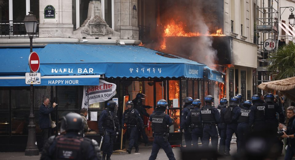 Αστυνομικές δυνάμεις 80.000 ατόμων αντιμετώπισαν τις μαζικές διαδηλώσεις με έντονη ένταση, ενώ η εισαγγελία του Παρισιού ξεκίνησε έρευνα για πυρκαγιά σε εστιατόριο.