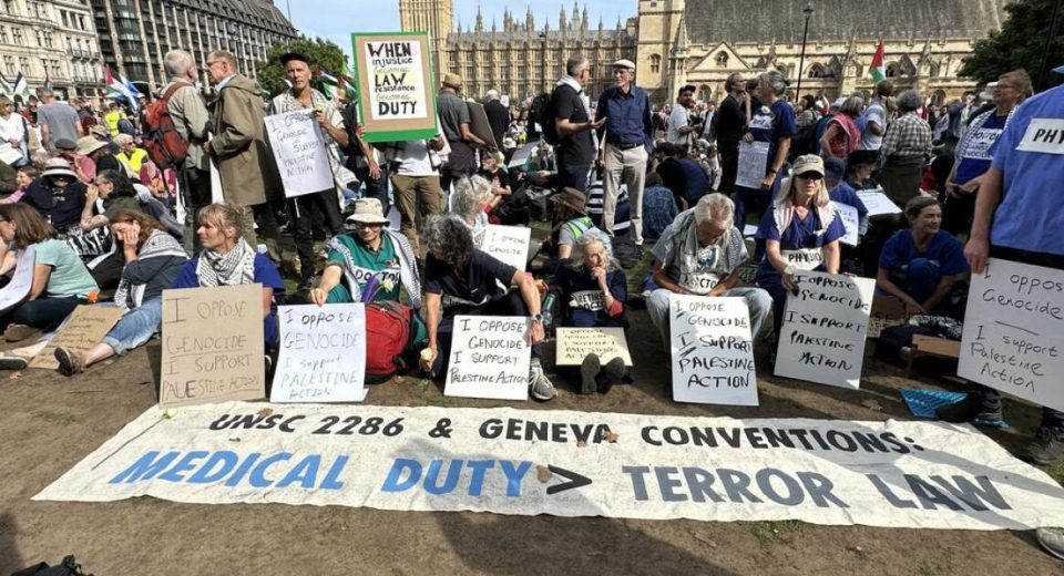 Εκατοντάδες διαδηλωτές συγκεντρώθηκαν στο κέντρο του Λονδίνου για να εκφράσουν την αντίθεσή τους στην απαγόρευση της οργάνωσης Palestine Action, που χαρακτηρίστηκε τρομοκρατική από την κυβέρνηση.