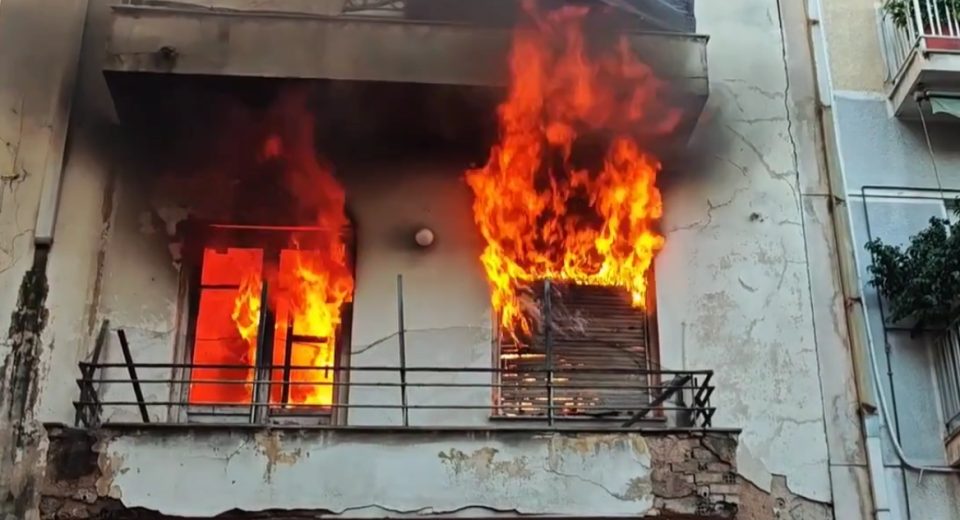 Ισχυρές δυνάμεις της Πυροσβεστικής επιχειρούν σε φωτιά που ξέσπασε σε εγκαταλελειμμένο κτίριο κοντά σε κατοικημένες πολυκατοικίες.