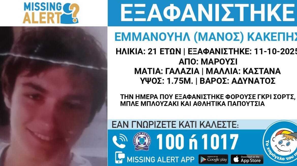 Technocratic Εξαφάνιση 21χρονου από το Μαρούσι: Ανησυχία για τη ζωή του... Το Χαμόγελο του Παιδιού δημοσιοποιεί την εξαφάνιση του 21χρονου Μάνου Κακέπη, εκφράζοντας φόβους για την ασφάλειά του. BY writer 14 Οκτωβρίου, 2025 0 Comment