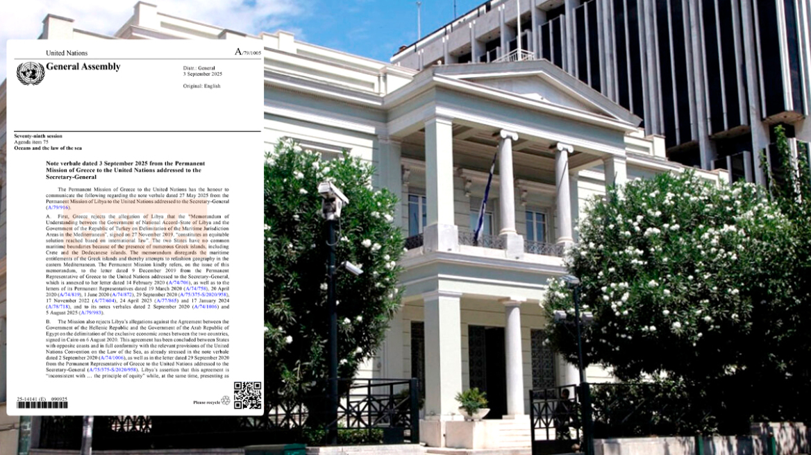 Με ρηματική διακοίνωση προς τον ΟΗΕ, η Αθήνα απορρίπτει το μνημόνιο Τουρκίας-Λιβύης, αναδεικνύοντας τη νομιμότητα των ελληνικών θαλάσσιων δικαιωμάτων και...