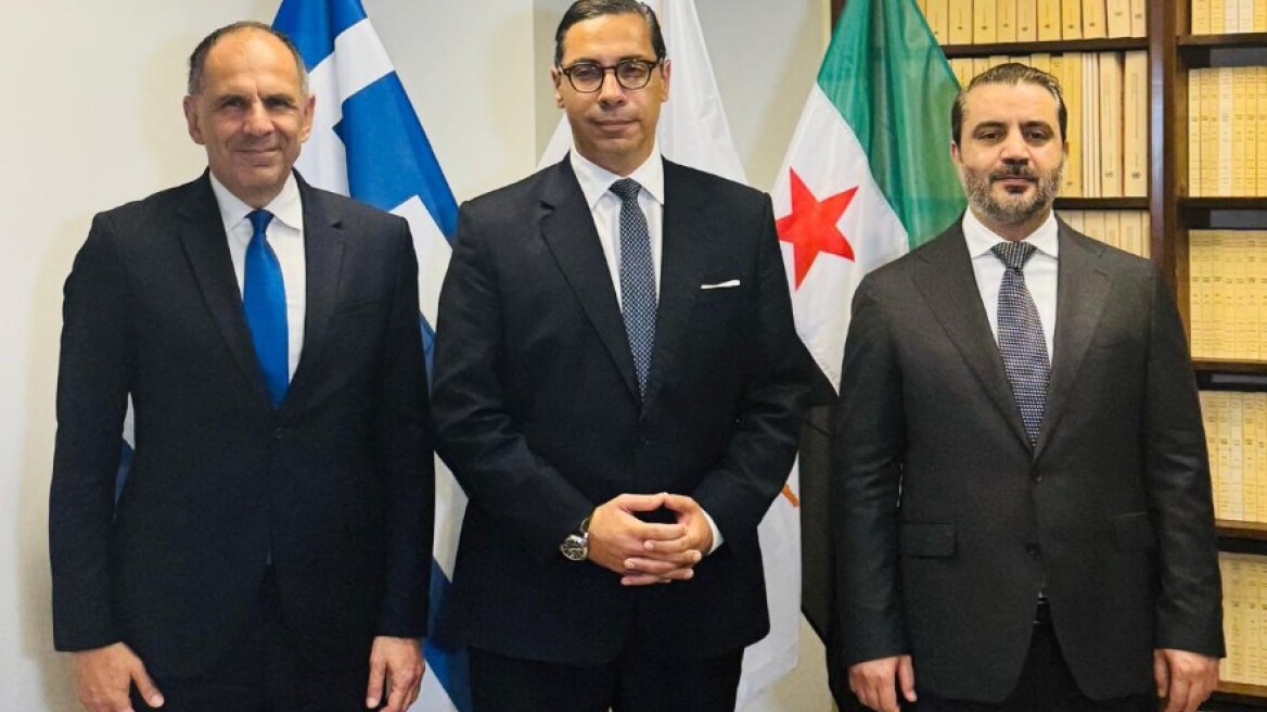 Στη συνάντηση, που συμμετείχαν ο Έλληνας υπουργός Εξωτερικών Γιώργος Γεραπετρίτης, ο Κύπριος ομόλογός του Κωνσταντίνος Κόμπος και ο μεταβατικός ΥΠΕΞ της Συρίας Ασάντ Σαϊμπανί, συζητήθηκαν θέματα που αφορούν την ενίσχυση των καλών γειτονικών σχέσεων και τη σταθερότητα στην ευρύτερη περιοχή.