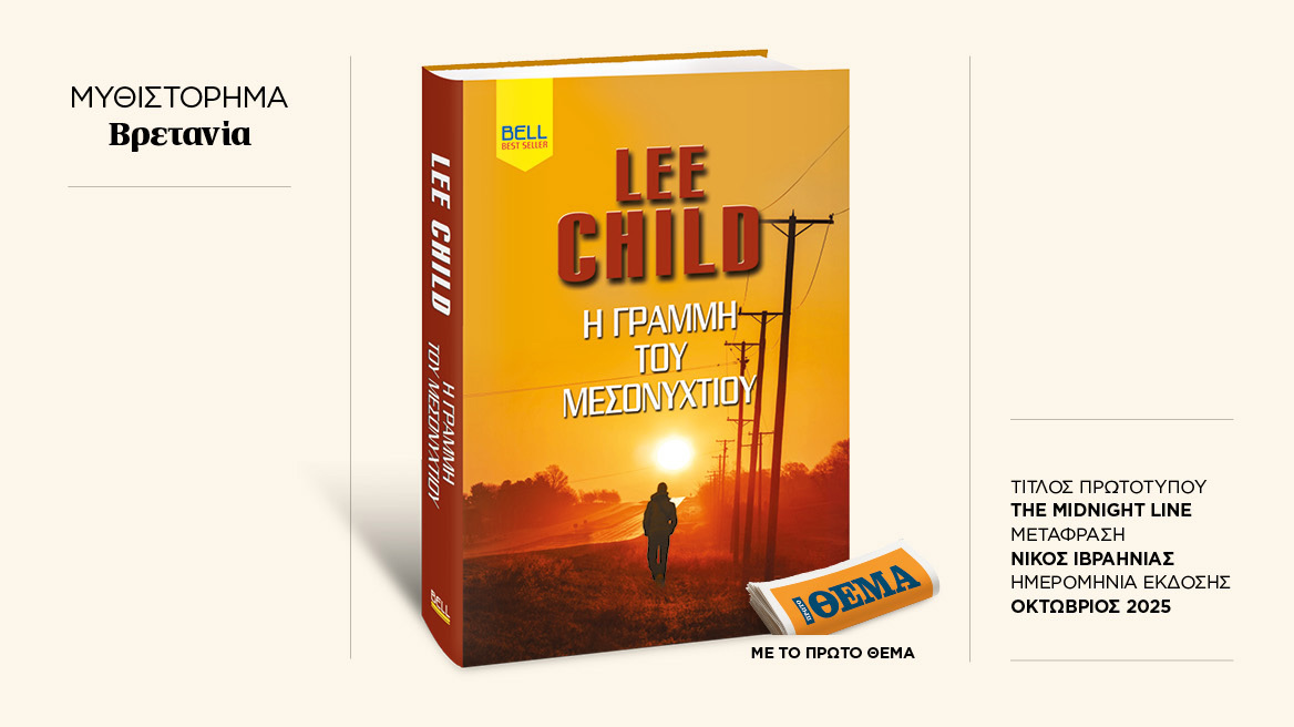 Αυτή την Κυριακή, το καθηλωτικό θρίλερ «Η γραμμή του μεσονυχτίου» του Lee Child σας περιμένει στο ΘΕΜΑ, για μια αναγνωστική εμπειρία που κόβει την ανάσα.